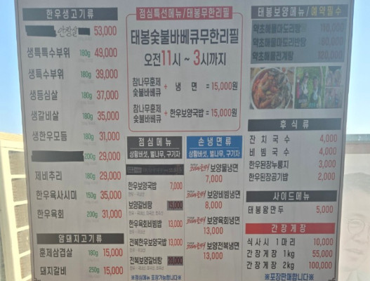 백반기행 당진 민물장어 바베큐 맛집 대표 메뉴는 한우 특수부위와 대물장어, 무한리필 바베큐 세트입니다. 새우살, 안창살, 갈비살 등 최상급 한우는 육즙 가득해 입안에서 부드럽게 녹으며, 장어 역시 크기와 신선함에서 호평을 받습니다. 무한리필 바베큐 런치 특선은 가성비가 좋아 직장인과 가족 단위 손님에게 특히 인기 있으며, 보양국밥·냉면·훈제 바베큐 세트 등 점심 메뉴는 7천 원부터 시작해 부담 없이 즐길 수 있습니다.