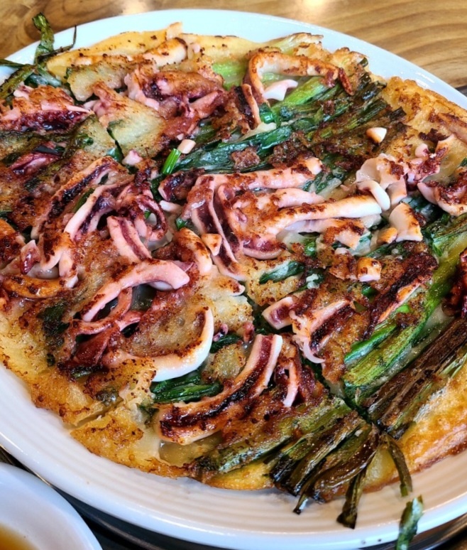 또 생생정보 택시맛객 광주 만두전골 맛집에서는 해물파전도 함께 즐길 수 있어요. 오징어가 듬뿍 들어간 파전은 바삭하면서도 쫀득한 식감이 일품이에요.