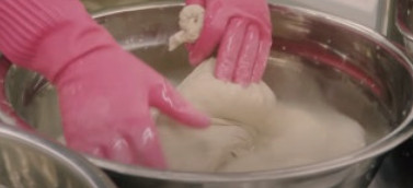 8. 면포를 직접 주물러 엿기름 속 효소를 우려 난다. (뽀얗게 우러날 때까지 주무름)