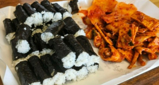 전현무계획2 통영 충무김밥 맛집 의 충무김밥은 밥만 단단히 말아 한입 크기로 썰어내는 것이 특징입니다. 고슬고슬한 밥과 김의 고소한 향이 어우러지고, 별도의 간을 하지 않아 담백한 밥맛이 강조됩니다. 대신 함께 제공되는 오징어·어묵 무침과 석박지가 감칠맛을 더하며 조화를 완성합니다.