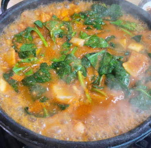 양전골 역시 전현무계획2 통영 40년 전통 곱창 & 곱창전골 맛집의 별미입니다. 사골 베이스 육수에 양고기의 고소한 풍미가 더해져 국물이 진하면서도 담백합니다. 끓는 동안 고기에서 우러난 육즙과 채소의 단맛이 국물에 녹아들어 자연스러운 조화를 이루며, 당면이나 우동을 넣어 마무리하면 더욱 푸짐하게 즐길 수 있습니다.