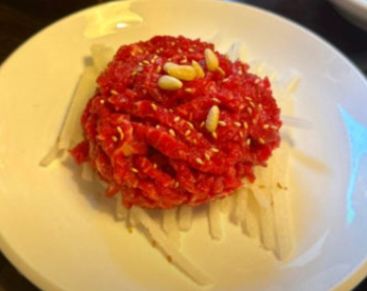 틈만나면 청담동 한우 소고기 맛집에서는 고기 주문 시 기본 반찬으로 꼬시래기, 파절임, 샐러드 등이 제공되며, 특히 직접 끓여낸 선짓국은 담백하고 깊은 맛으로 인기입니다. 이 선짓국은 고기를 먹기 전 입맛을 돋우고 속을 편안하게 만들어 주는 특별한 서비스로, 손님들에게 인기 많아요.