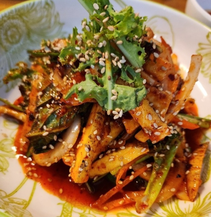 - 도토리묵 무침: 신선한 채소와 함께 새콤달콤한 양념으로 버무려져 깔끔하게 마무리하기 좋습니다.