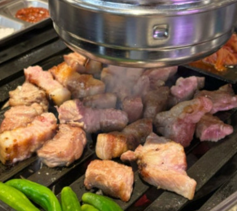 대표 메뉴는 숙성 목살·삼겹살(각 1만8천원), 숙성 껍항정살(1만9천원), 오도독살(1만7천원) 등으로 모두 국내산 돼지고기를 숙성해 제공합니다. 주문 후 직접 숯불에 구워 먹는 시스템인데 숯불 화력이 강해 자주 뒤집어줘야 하지만, 숙성육 특유의 촉촉함과 고소한 풍미가 살아납니다. 특히 목살은 부드럽고 잡내가 없어 입안에서 녹는 듯하며, 오도독살은 씹는 맛이 독특해 반찬이나 밥과 곁들이면 더욱 맛있습니다.